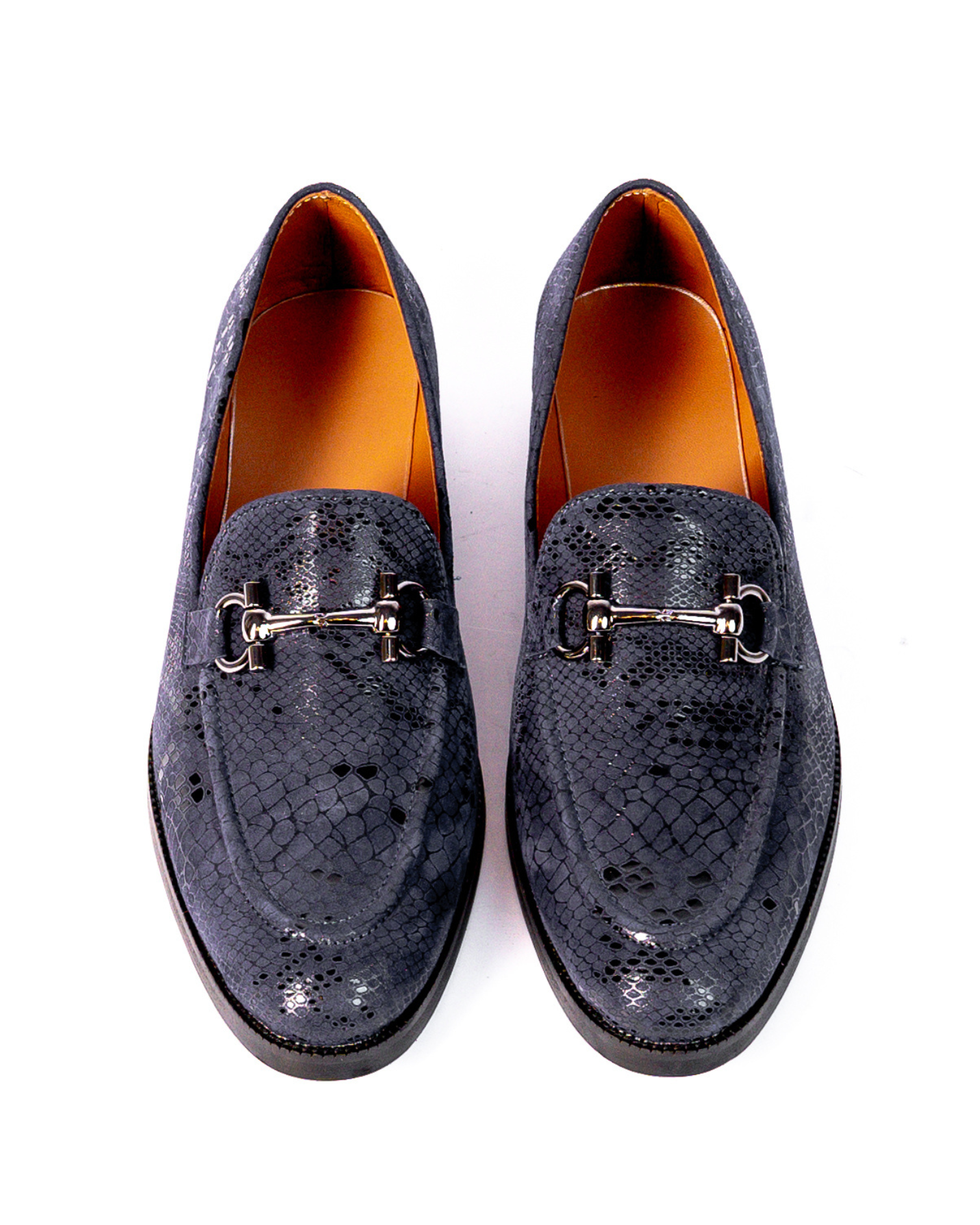 Refined rebellion in every step. The Graphite Muse loafers, detailed with hand-cut scales and a signature metal bit, redefine modern luxury.