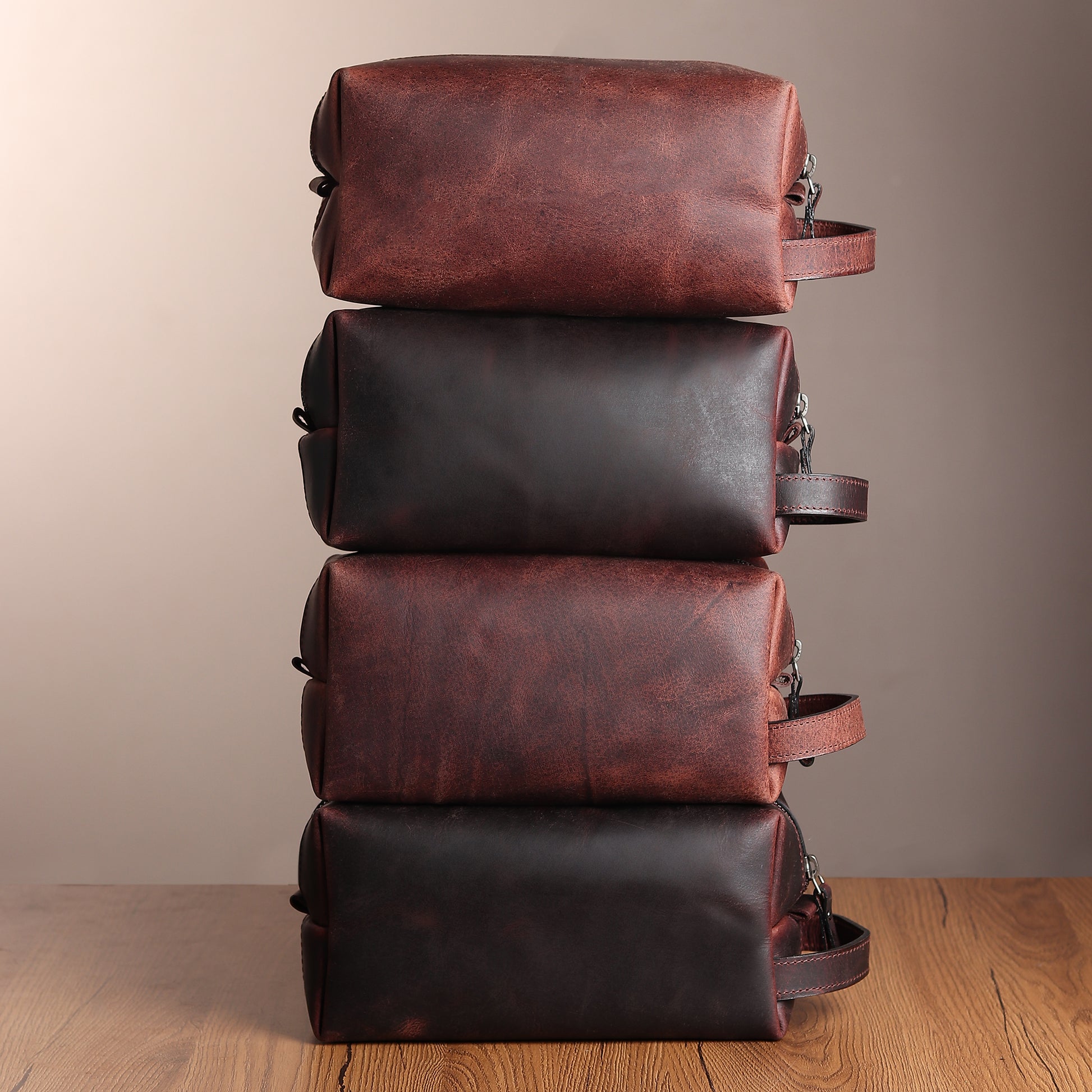 Our leather toiletry bags are the ultimate gift for men, perfect for Christmas, birthdays, and even weddings for your Best Man and Groomsmen. They are durable and great for traveling the world or travel to and from the gym. They can be monogramed or personalized with initials for that special boyfriend, husband, father, dad, grandpa or any man in your life.