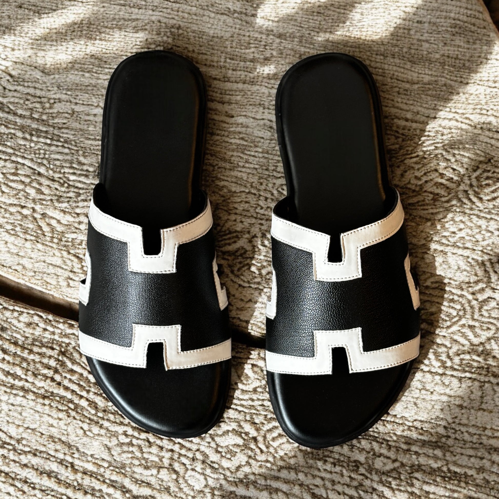 These slip-ons are crafted from premium black leather, offering a sleek and sophisticated look that’s perfect for any occasion. The minimalist design is enhanced by subtle detailing, making them versatile enough to pair with both casual and formal attire.